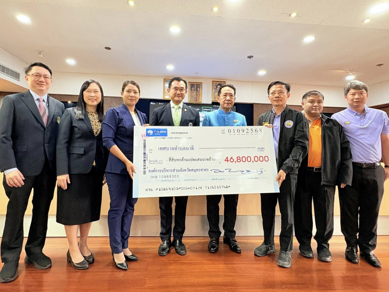 โดยมีนายนริศ นิรามัยวงศ์ ผู้ว่าราชการจังหวัดสมุทรสาคร ศ.นพ.อภิชาติ อัศวมงคลกุล คณบดีคณะแพทยศาสตร์ศิริราชพยาบาล นายอุดม ไกรวัตนุสสรณ์ นายก อบจ.สมุทรสาคร และสมาชิกสภาฯ ร่วมมอบเงินอุดหนุนฯ ณ ห้องประชุมพันท้ายนรสิงห์ (401) ชั้น 4 ศาลากลางจังหวัดสมุทรสาคร